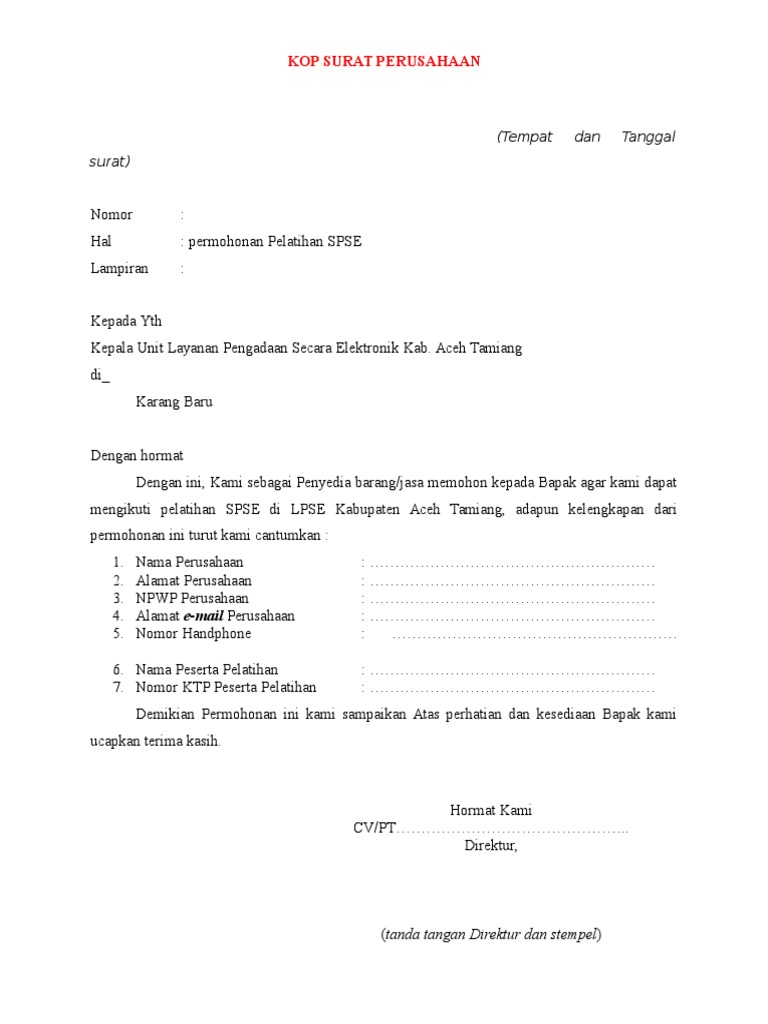 Contoh Surat Permohonan Data Desa untuk Kegiatan Organisasi. Sebagai contoh perusahaan yang akan mengadakan suatu program menulis surat berisi permohonan kerja sama kepada perusahaan lain. Contoh Surat Permohonan Izin.